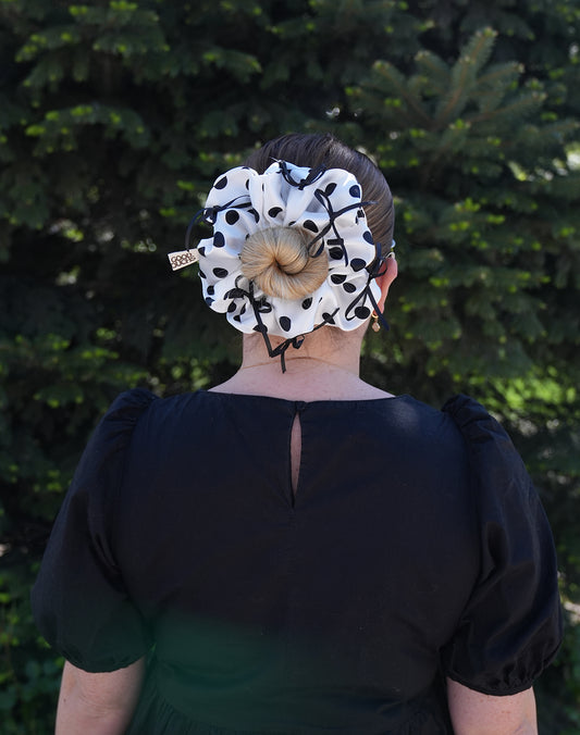 Oversize Polka Ribbon Scrunchie - Yellow&Black